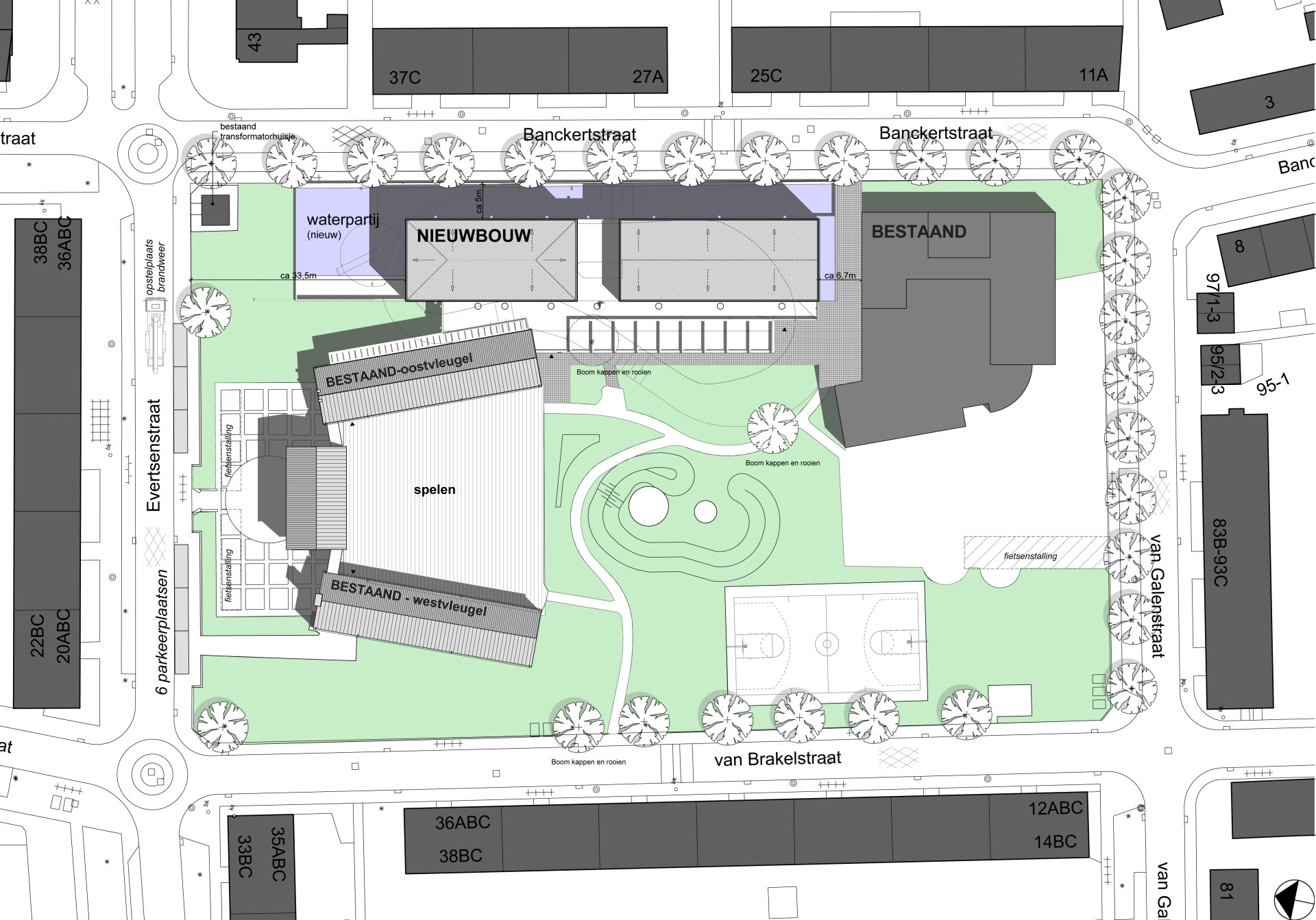 De transformatie van de naoorlogse lagere school tot een brede basisschool past in het kader van de herstructurering van Kruiskamp. Veel van de voorzieningen in deze Amersfoortse wijk, die grotendeels na de tweede wereldoorlog is gebouwd, kwamen de laatste jaren leeg te staan. Ook de voormalige lagere school is sinds enige jaren niet meer als school in gebruik. Het is een ontwerp uit begin jaren vijftig van de toenmalige stadsarchitect D. Zuiderhoek en staat op de nominatie om monument te worden, maar is nu verwaarloosd. Door het gebouw om te vormen tot brede school kan het een spilfunctie gaan vervullen. Naast de basisschool dienen ook een sporthal en wijkfuncties in het gebouw te worden opgenomen. De huidige bevolkingssamenstelling vraagt om die voorzieningen, zoals kinderopvang, naschoolse opvang, centrum voor jeugd en gezin (CJG) en een sportaccommodatie.