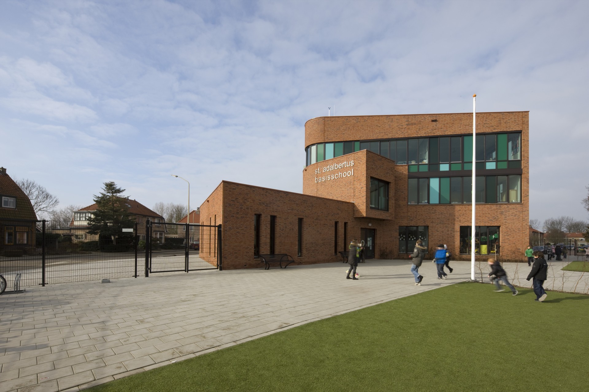 De 9-klassige katholieke basisschool St. Adalbertus biedt de Spaarndamse jeugd volop gelegenheid modern onderwijs te volgen. Het gebouw ligt heel gunstig in de buurt van het dorpscentrum van de gemeente Spaarndam. Ook de kinderen van toekomstige bewoners van de in ontwikkeling zijnde buurt Spaarne Buiten zullen voor het katholieke onderwijs hier goed terecht kunnen. Een school is een belangrijk onderdeel van het leven van een kind. Daar moeten kinderen zich thuisvoelen en veilig. Zonder die voorwaarden zal een onderwijsproces nooit succesvol kunnen verlopen. Als het aan geborgenheid ontbreekt, stagneert het leren. Een gebouw dat uitstraalt een veilig onderkomen te zijn, zal het onderwijstraject stimuleren.