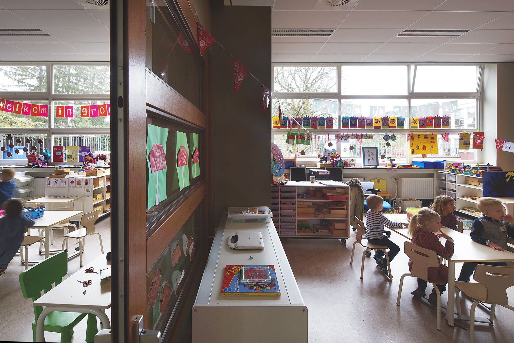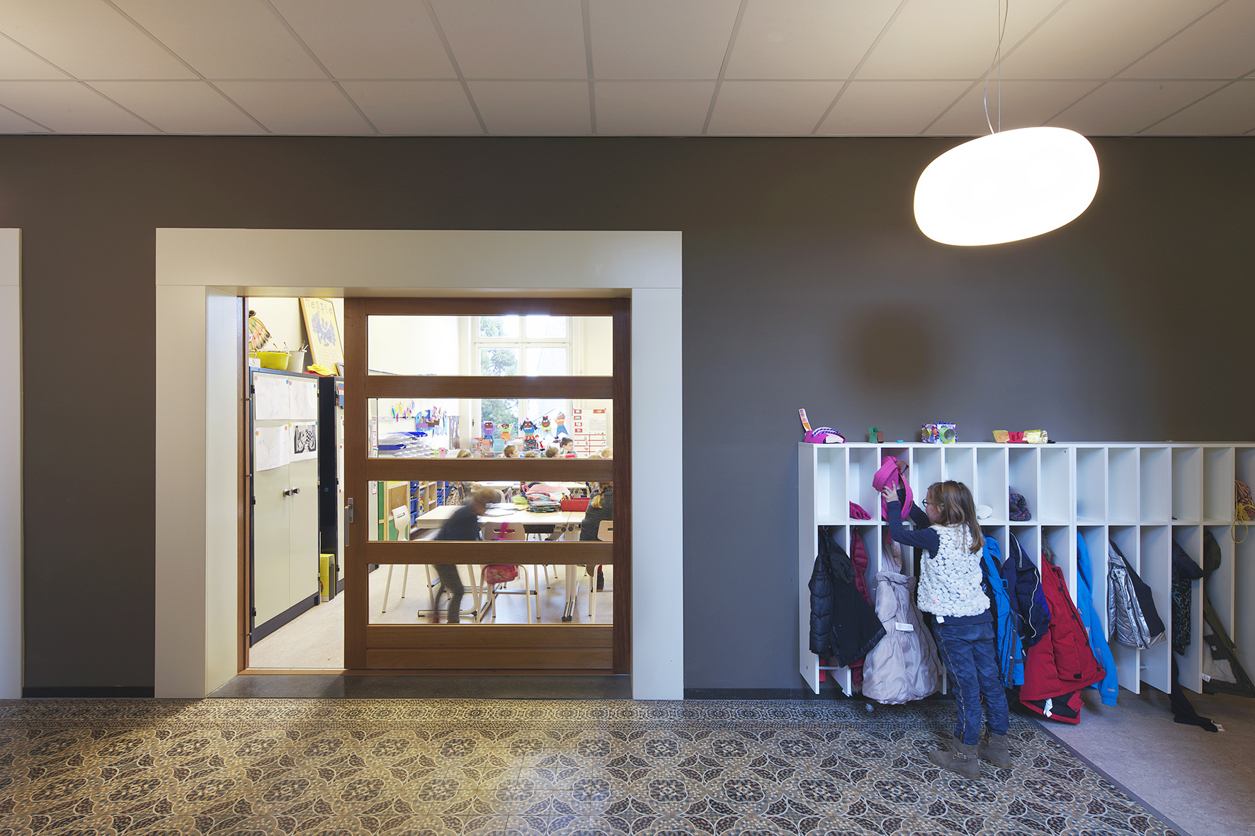 Hoe maak je een basisschool geschikt voor eigentijds onderwijs terwijl het budget niet de realisatie van alle wensen in een keer toelaat? En hoe overtuig je ouders, kinderen en gemeente ervan dat jouw school voorop loopt bij vernieuwing? Door gefaseerd te verbouwen. De verbouwing van Basisschool Sint-Pieter wordt vanuit een integrale visie gefaseerd uitgevoerd. Als eerste is de begane grond grondig gerenoveerd en aangepast zodat het weer voldoet aan de huidige eisen ten aanzien van onderwijs, binnenklimaat en exploitatie. Het onderwijs op de verdieping ging tijdens de verbouwing gewoon door. In een volgende fase kan de andere verdieping nog worden aangepakt.
