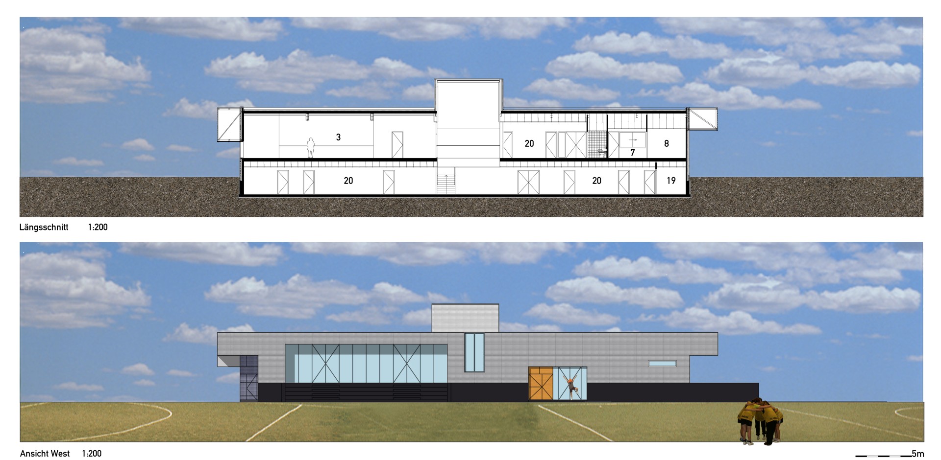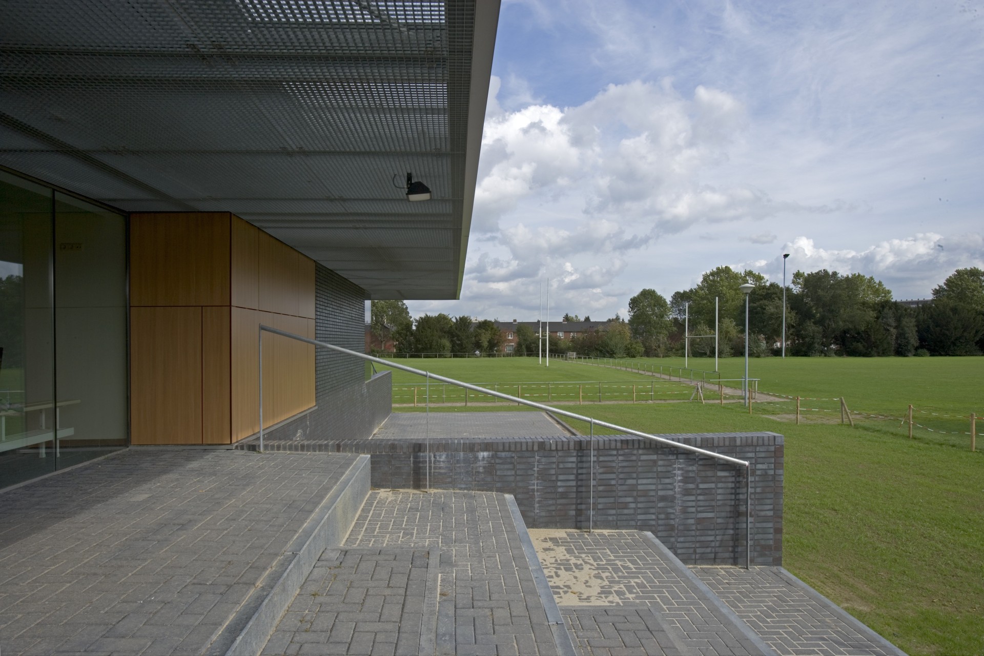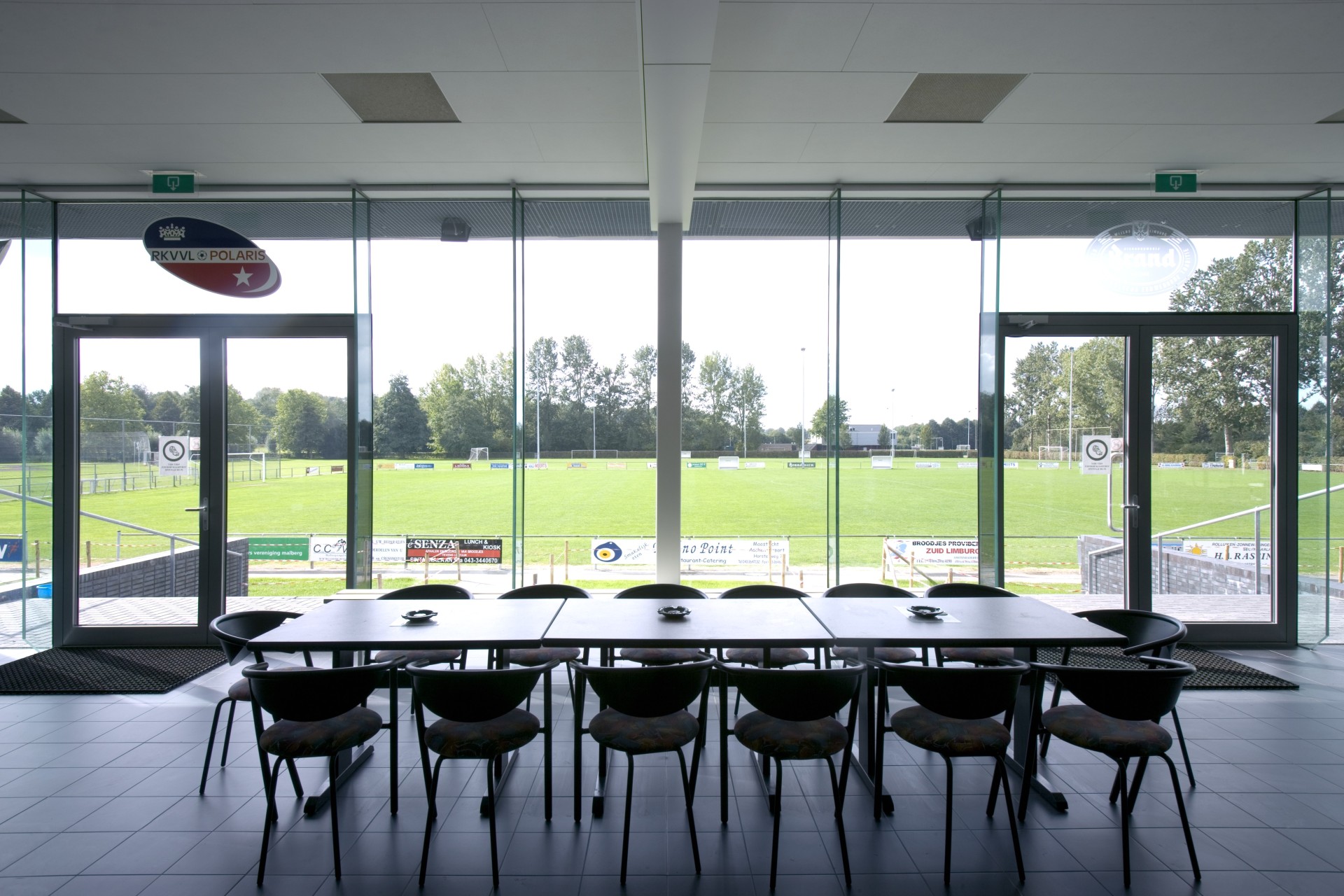 Temidden van de bestaande sportvelden in het sportpark is een nieuw verenigingsgebouw gerealiseerd dat onderdak biedt aan de sportverenigingen. In een halfverdiepte bouwlaag zijn de douche- en kleedruimtes ondergebracht alsmede de bergingen. Dit volume fungeert als een podium waar bovenop drie kantines en de bestuursruimtes zijn geplaatst. Het gebouw ligt centraal ten opzichte van de hoofdvelden van de drie hoofdgebruikers: voetbal, honkbal en rugby. Elke kantine is zo geplaatst dat zij uitzicht biedt op het bijbehorende wedstrijdveld. De samenvoeging van de oorspronkelijke drie kantines in een gebouw maakt het mogelijk flexibeler van de voorzieningen gebruik te maken. Zo staan bij grotere evenementen zoals toernooien meer kleed- en douchefaciliteiten ter beschikking van de clubs.